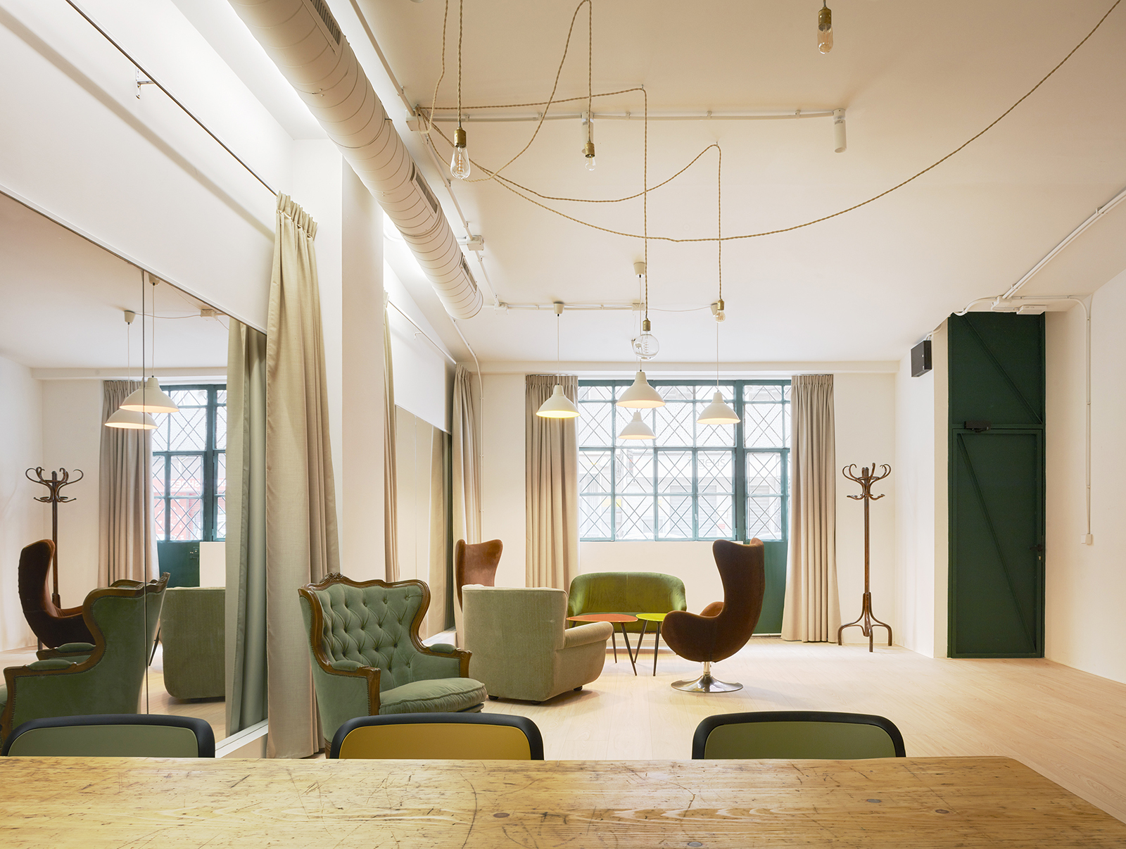 Multi-purpose rooms of different sizes complete the ground floor. The smaller ones, located next to one of the patios, are designed as meeting rooms, dining space, workshop rooms, or as private offices. The living room facing the street, the Bailen room, is a multi-purpose room with a welcoming atmosphere open to many possibilities.