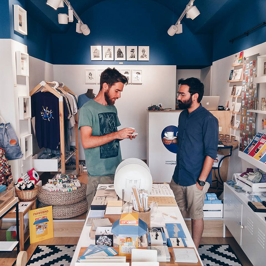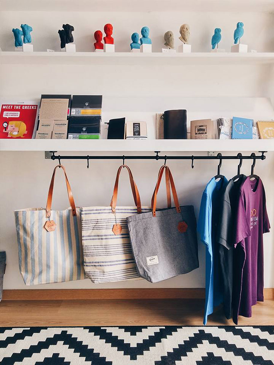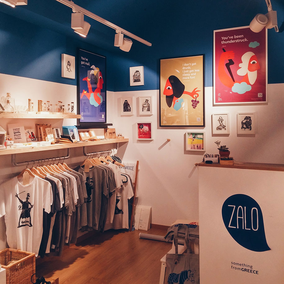 The team with great pleasure and love chooses artwork from Greek designers, while develops its own range of products and does a step forward to the designation of the Greek historical wealth in a modern performance, enriching the choices of both locals and visitors at the souvenirs’ market. Both the size of Zalo (25cm2), and the variety & diversity of the objects it shelters, drove to the creation of a space with simplicity to be its main characteristic.
