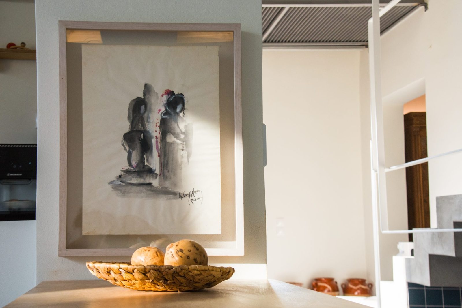 “The house follows the rhythm of the place: the garden extends within the natural terrain; the materials remain raw and authentic. Exposed concrete, rough plaster, surfaces that invite touch. The fireplace, contemporary in form, preserves the proportions and use of the old one. The home is designed through an outdoor-point-of-view— a gesture recalling the houses where life unfolded between courtyards and rooms,” points out the architect.