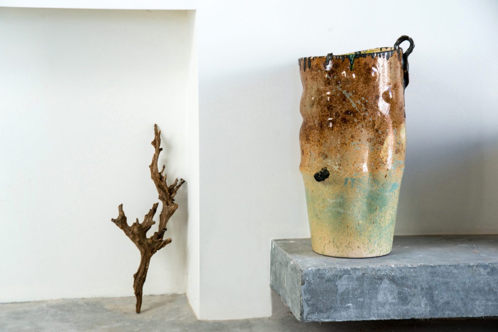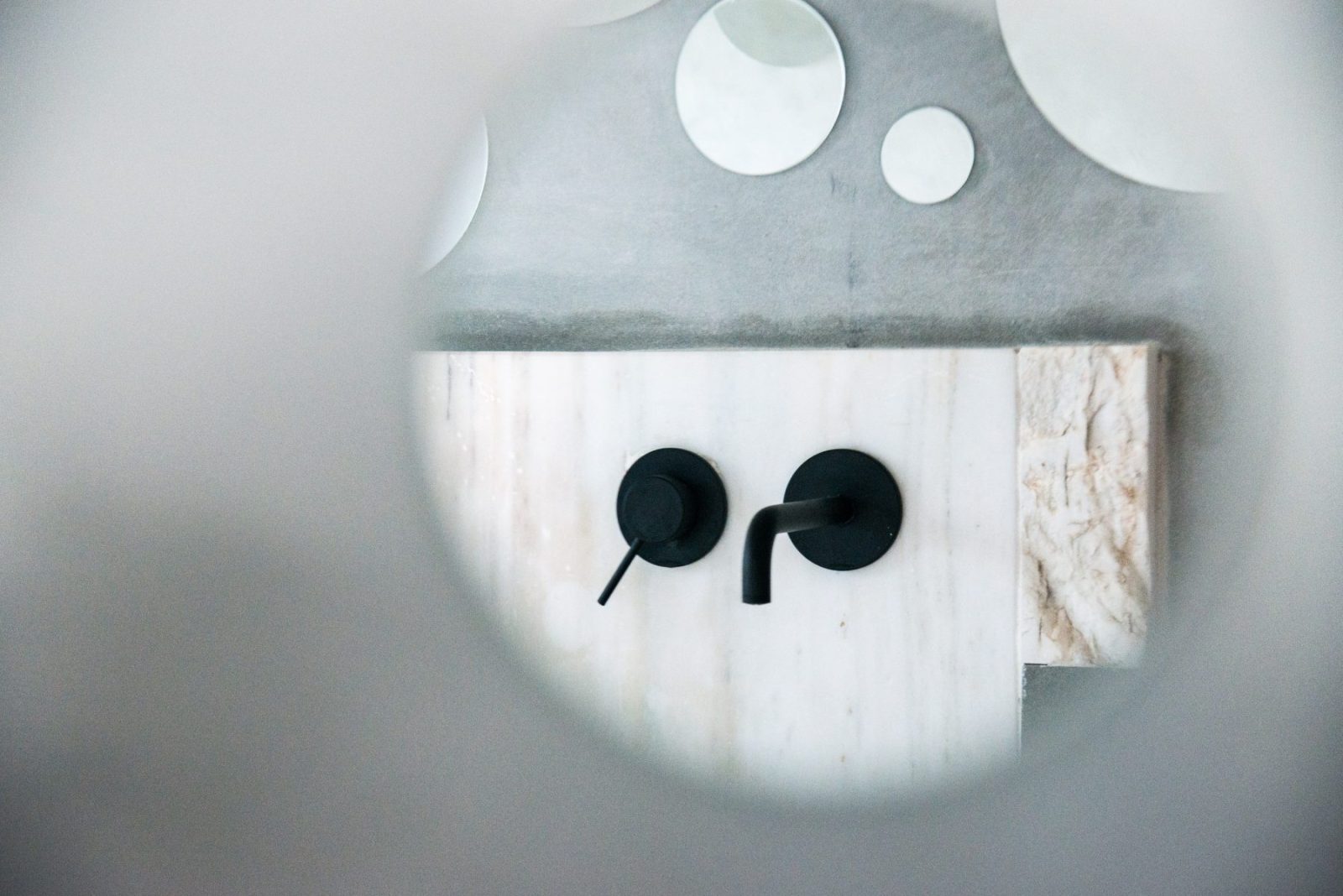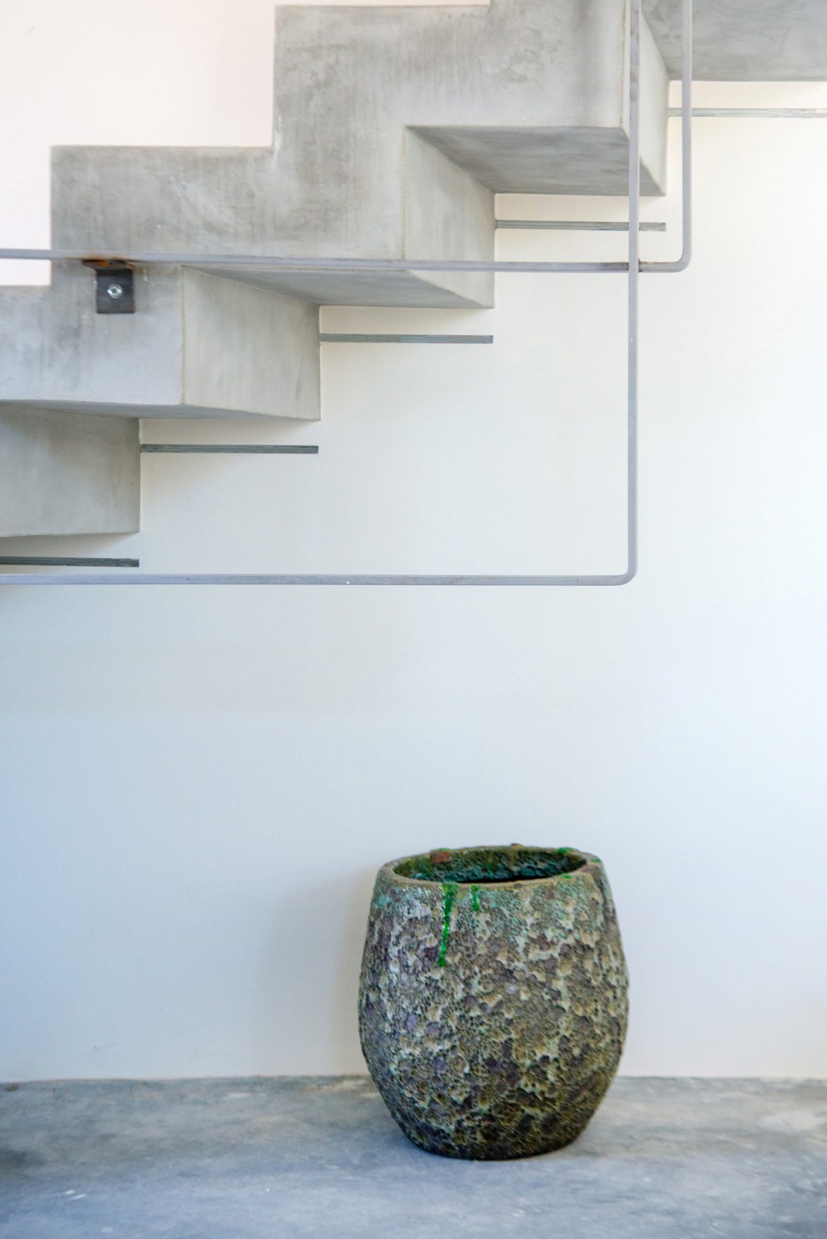 «Το σπίτι ακολουθεί τον ρυθμό του τόπου: ο κήπος είναι προέκταση του φυσικού ανάγλυφου, τα υλικά παραμένουν ακατέργαστα και αληθινά – ανεπίχριστο σκυρόδεμα, άγριος σοβάς, επιφάνειες που καλούν την αφή. Το τζάκι, σύγχρονο σε μορφή, διατηρεί τις αναλογίες και τον τρόπο λειτουργίας του παλιού. Το γραφείο προσεγγίζεται μέσα από τον εξωτερικό χώρο, σε μια χειρονομία που θυμίζει τα παραδοσιακά σπίτια όπου η ζωή υφαινόταν ανάμεσα σε αυλές και δωμάτια», επισημαίνει η Ναταλία.