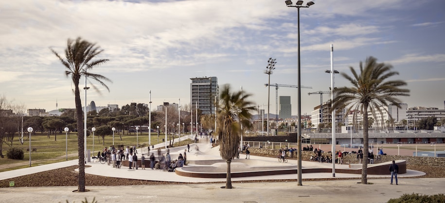 The Landskate Parks have changed this dynamic and have become a new and contemporary alternative of public space. They are not a sports area, a street, a square or a park…they are meant to be all these things simultaneously. These new meeting points unite both skaters and pedestrians, encouraging their interaction and helping potential conflicts not to arise. Their users are not only youngsters or adults who rekindle or continue their passion for skating, but also children who skate for the first time and parents that accompany them and increasingly, tourists from all over the world that come to Barcelona who are amazed by the immense street style possibilities the city has to offer.