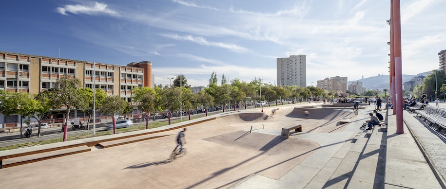 SCOB Arquitectura y Paisaje, an architecture and landscape studio run by Sergi Carulla and Oscar Blasco (SCOB), has designed five skateboarding areas in five very different quarters of the city of Barcelona: Poble Nou, Les Corts, Nou Barris, El Prat de Llbregat and Baró de Viver.