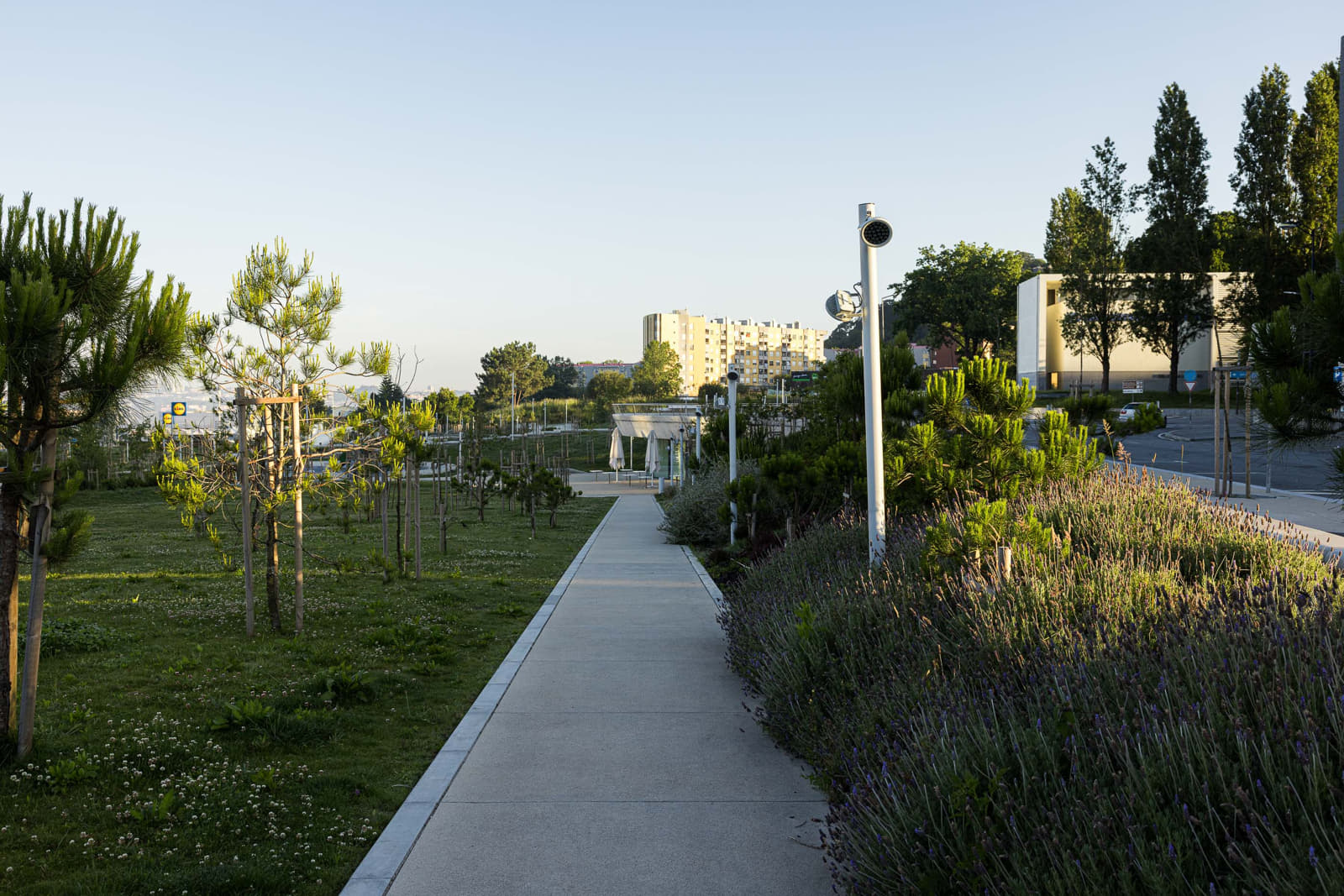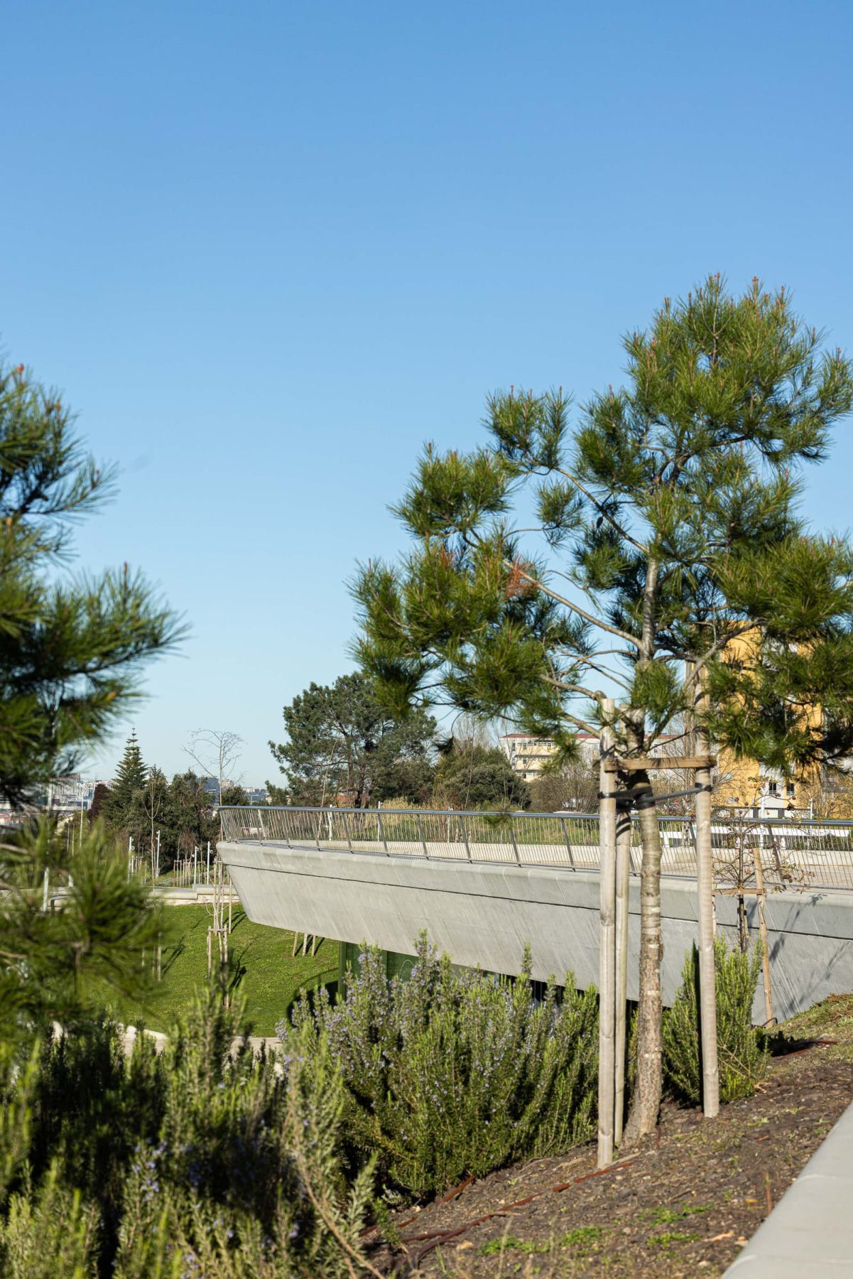 The planting of over 800 trees was also considered, such as Portuguese Birch, Silver Birch, Scots Pine, Maritime Pine, Black Poplar, Portuguese Oak, and Ginkgo Biloba, along with a diverse range of shrubs and sub-shrubs, such as Laurel, Juniper, Buckthorn, Wild Lavender, Rosemary, Lavender, Thyme, and Santolina, among others.