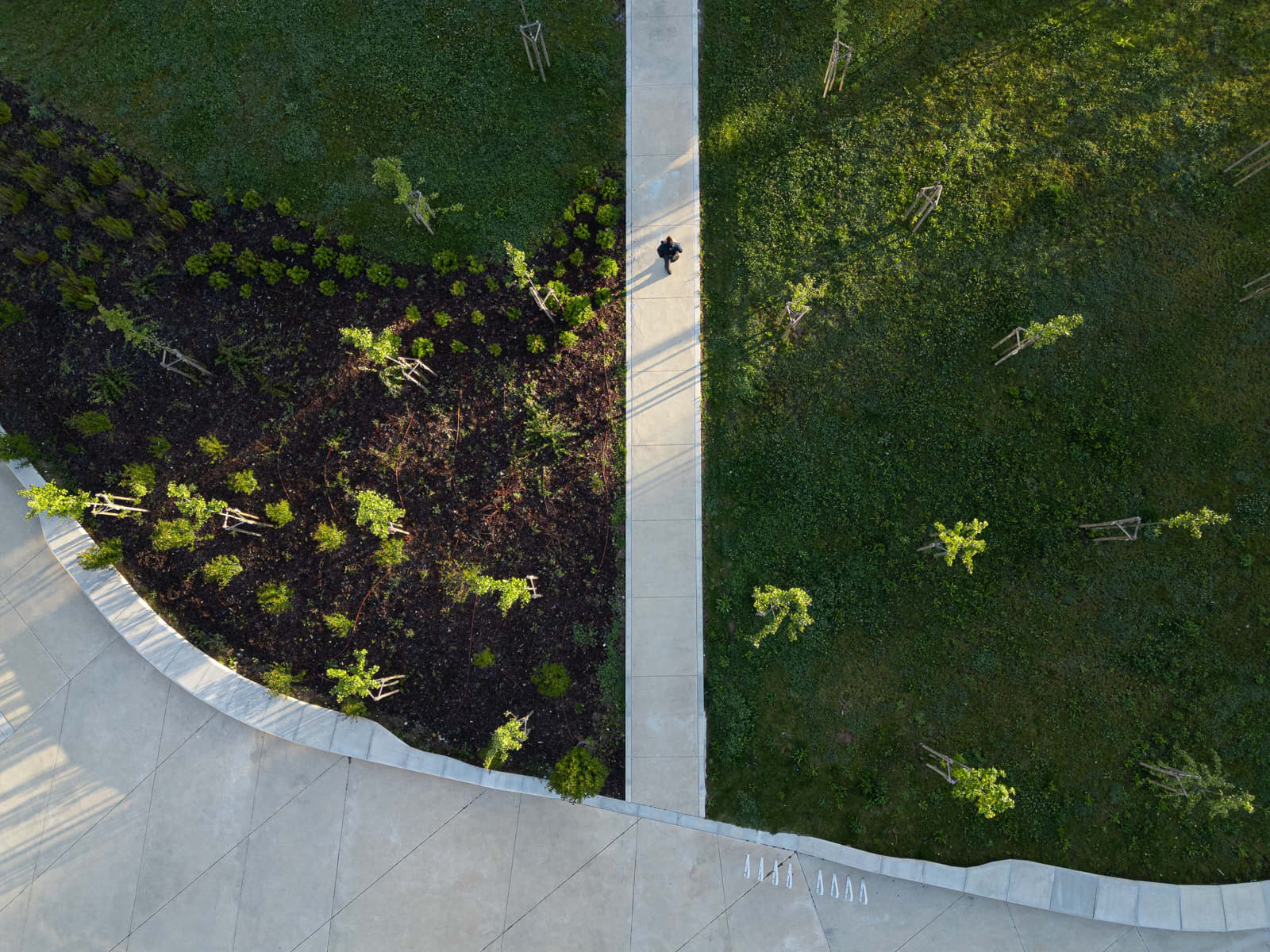 Originally, there was a noticeable pedestrian path in the center of the terrain, connecting the high elevation to the low elevation of the terrain. It was realized early on that it would be essential to maintain this connection.