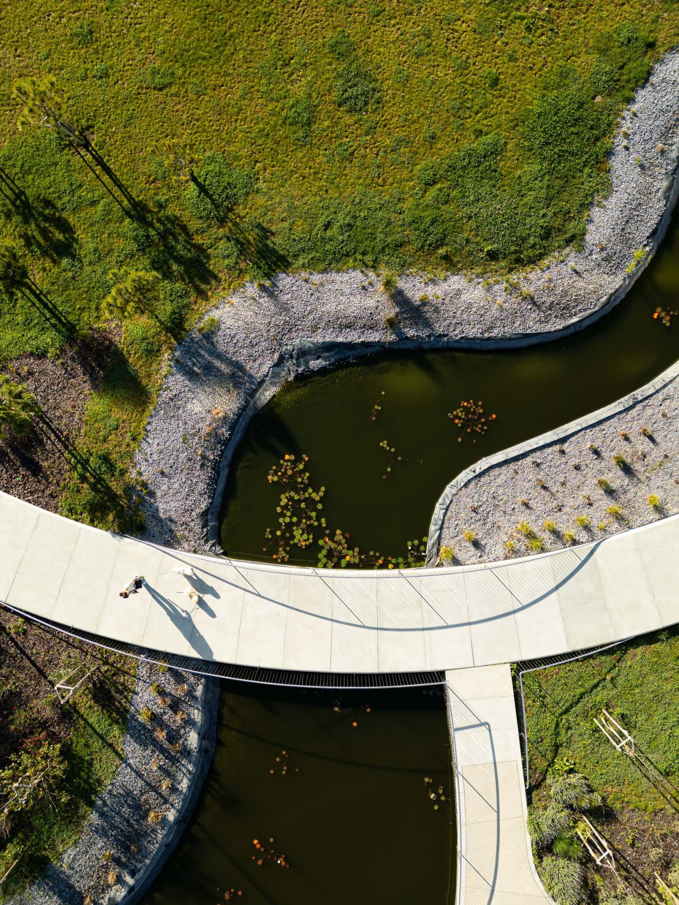 In order to promote a coherent and distinctive image, an element was created to draw the boundary of the park and all pedestrian paths.