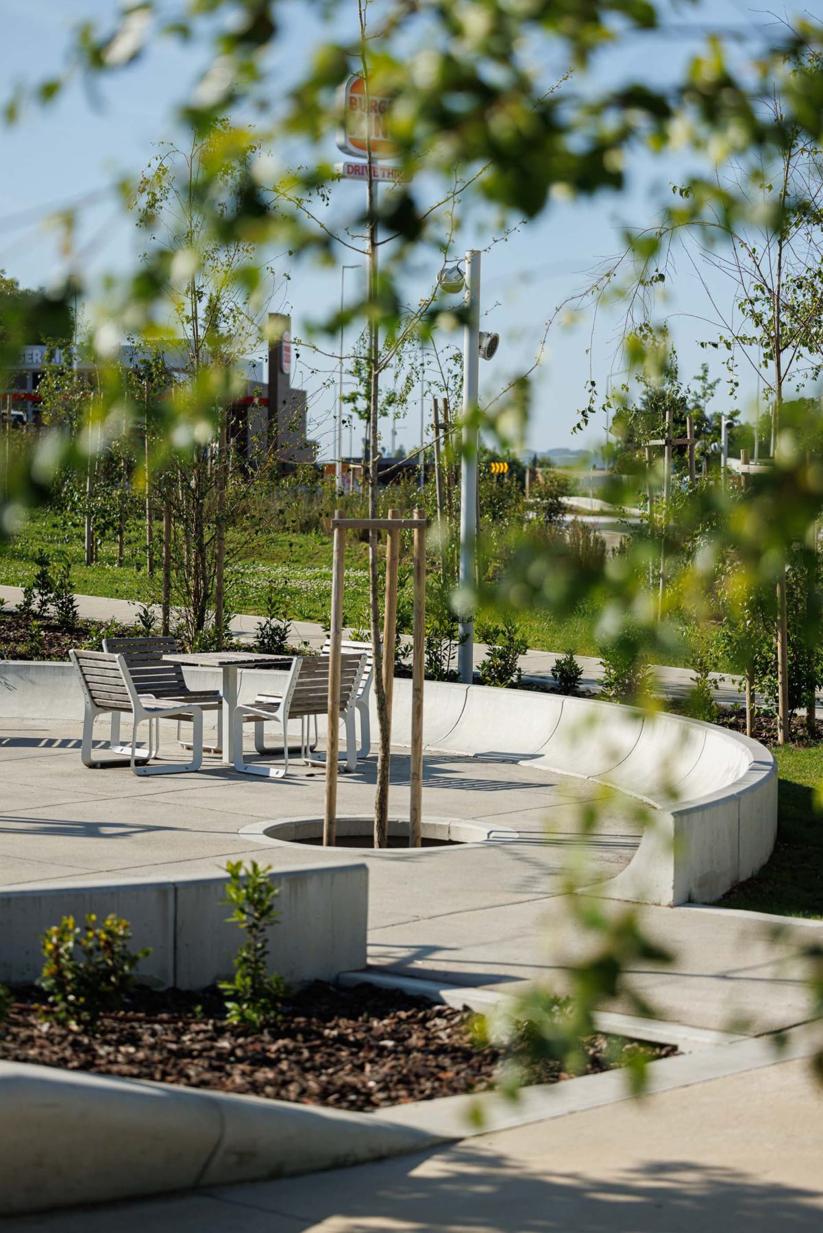In order to reinforce sustainability and preserve the environment, several retention basins were proposed throughout the park to retain rainwater in order not to overload the city’s stormwater network. This water will be absorbed by vegetation and/or evaporated, thus continuing its natural cycle.