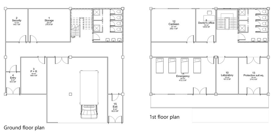 The hospital designed as “modules” from living or patients modules to the operation/main hospital module.