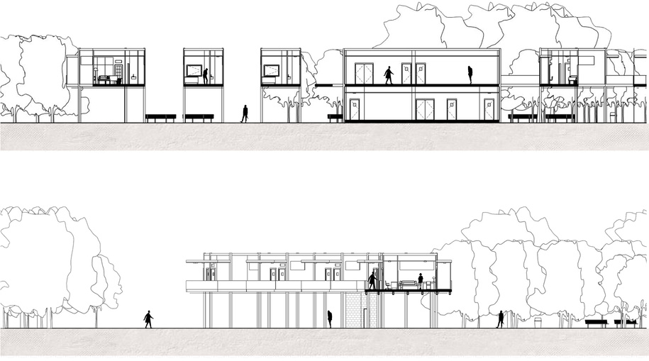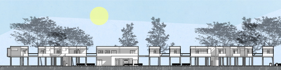The modules designed with elevated space, leaving the space under it for utilities and activities in the park as well.