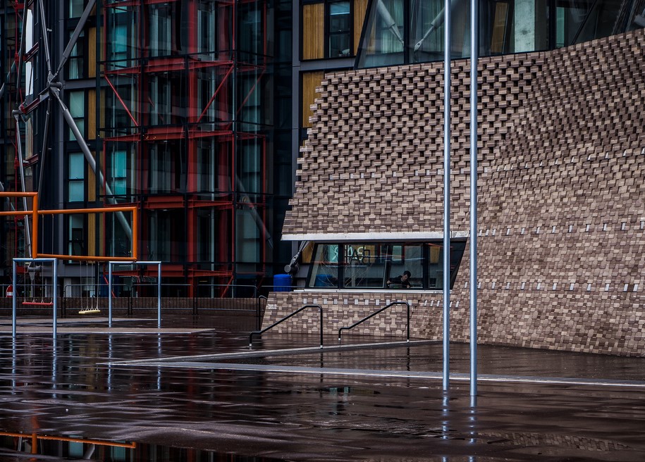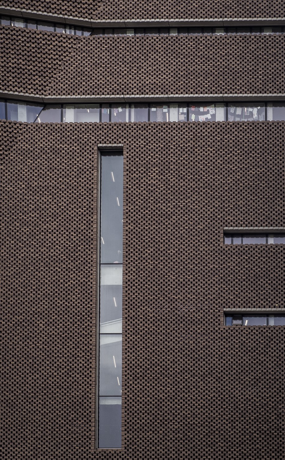 “We wanted the combined elements of Tate Modern, old and new, to be expressed as a whole, we wanted to have them come together and function as a single organism. Using the same base palette of bricks and brickwork in a radical new way, we created a perforated brick screen through which light filters in during the day and through which the building will glow at night. ” – Herzog & de Meuron