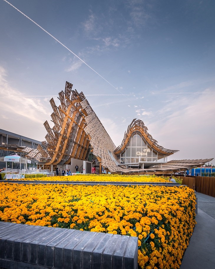 EXTERIOR VIEW OF CHINA PAVILION AT EXPO 2015 MILANO ITALY BY ARCHITECTS STUDIO LINK-ARC & TSINGHUA UNIVERSITY (C) PYGMALION KARATZAS