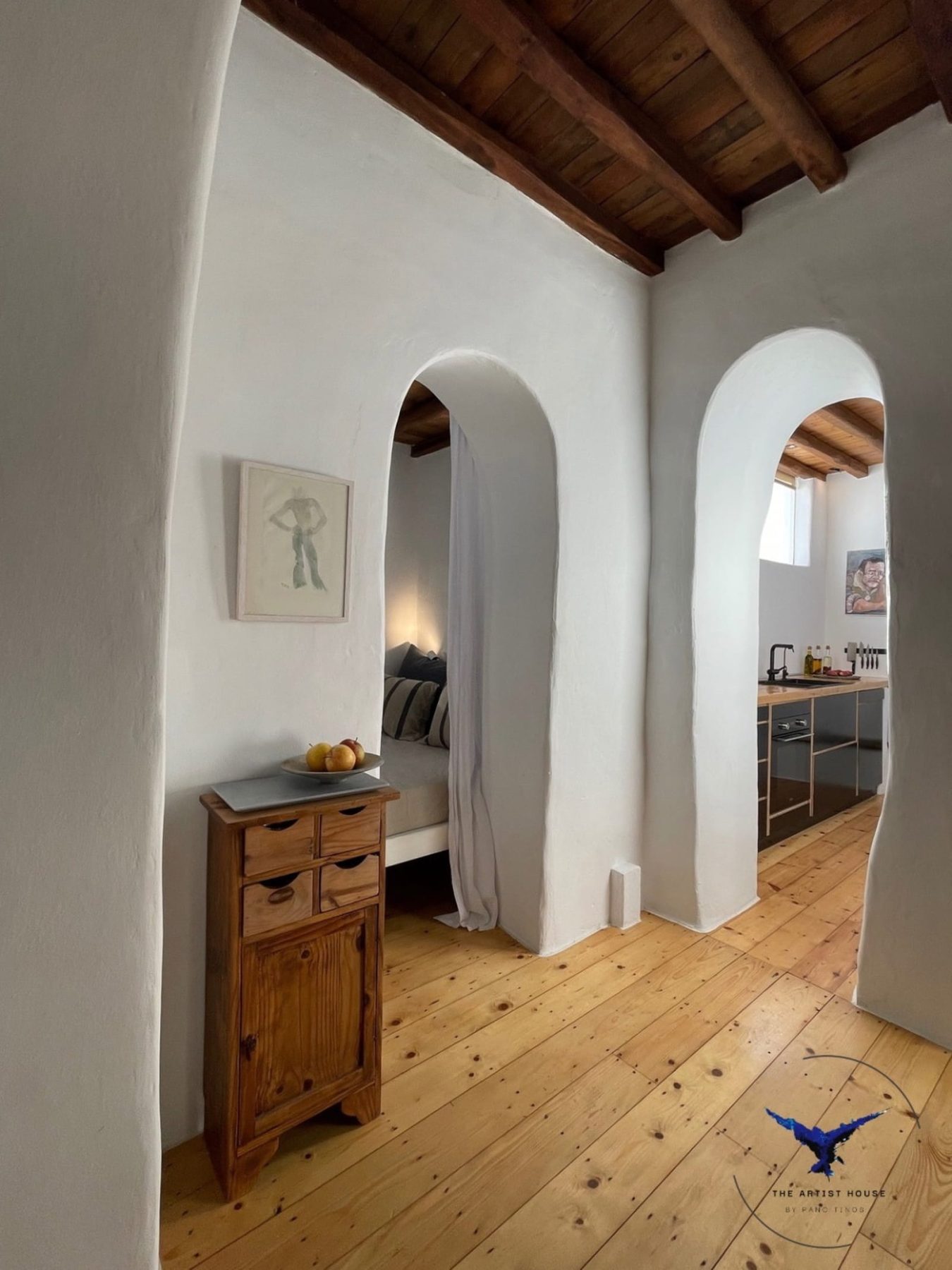 Η φιλοξενία επικεντρώνεται στην Κυκλαδική αρχιτεκτονική — τη δομή και την ατμόσφαιρα του ίδιου του The Artist House, καθώς και στα παραδοσιακά Κυκλαδικά χωριά Τριαντάρος και Βερδενιάρος.