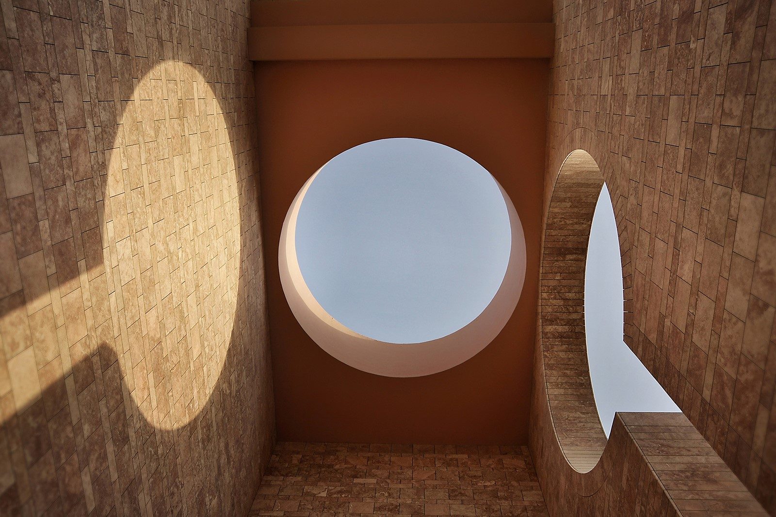 The college buildings are designed to provide an interior social life protected from the desert climate. For this, the simple geometric forms of the buildings provide minimum openings on the outside. Inside are central, multistorey courtyards, surrounding patios, and large stairs, encouraging interaction and communication.