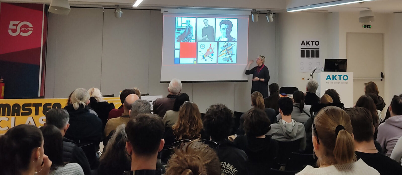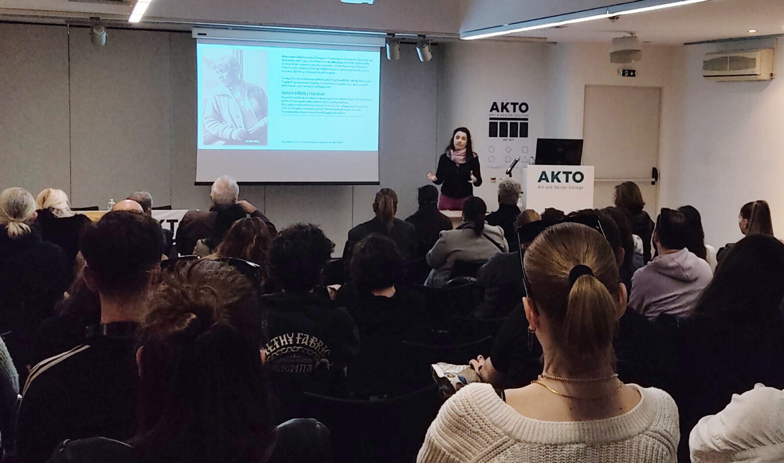 Το καλωσόρισμα έγινε από την Μαρία Δικαίου (Γραφίστρια, Καθηγήτρια Εφαρμοσμένων Τεχνών – Υποδιευθύντρια ΙΙΕΚ ΑΚΤΟ), η οποία μοιράστηκε με το κοινό την ιδέα και τη φιλοσοφία της συγκεκριμένης εκδήλωσης, με αφορμή το επερχόμενο εκπαιδευτικό ταξίδι μελών της κοινότητας του ΑΚΤΟ στην πανεπιστημιούπολη DESSAU – BAUHAUS.