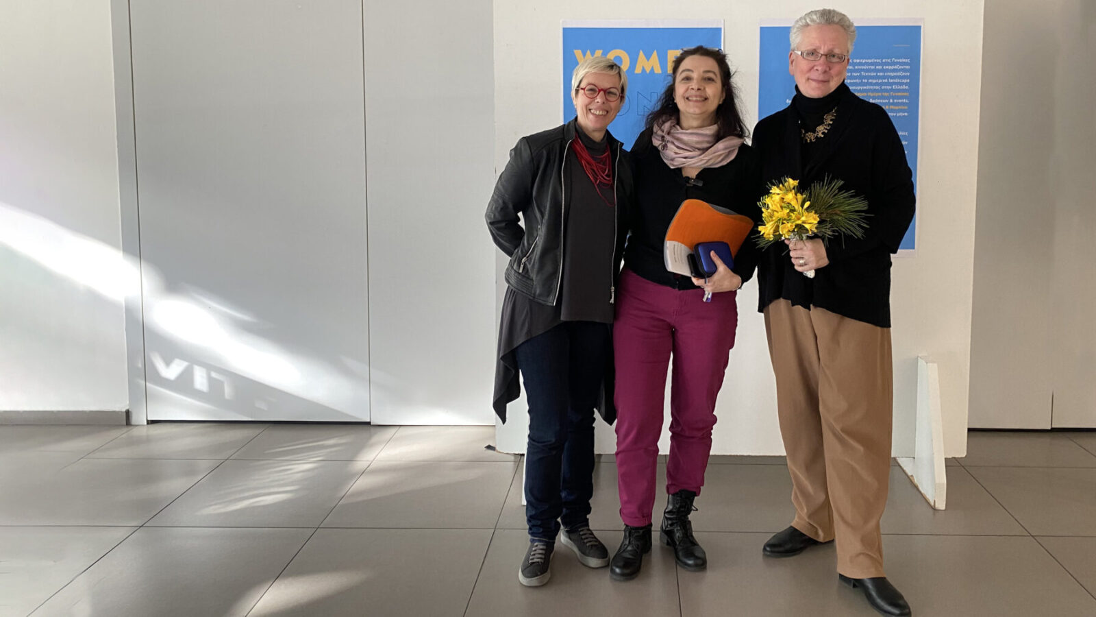 Από αριστερά: Οι καθηγήτριες του ΑΚΤΟ Ελευθερία Δελαζάνου (Ιστορικός Τέχνης), Αντωνία Κονδύλη (Αρχιτέκτων Μηχανικός, Ιστορικός Τέχνης – Αρχιτεκτονικής), Μαρία Δικαίου (Γραφίστρια, Καθηγήτρια Εφαρμοσμένων Τεχνών – Υποδιευθύντρια ΙΙΕΚ ΑΚΤΟ)
