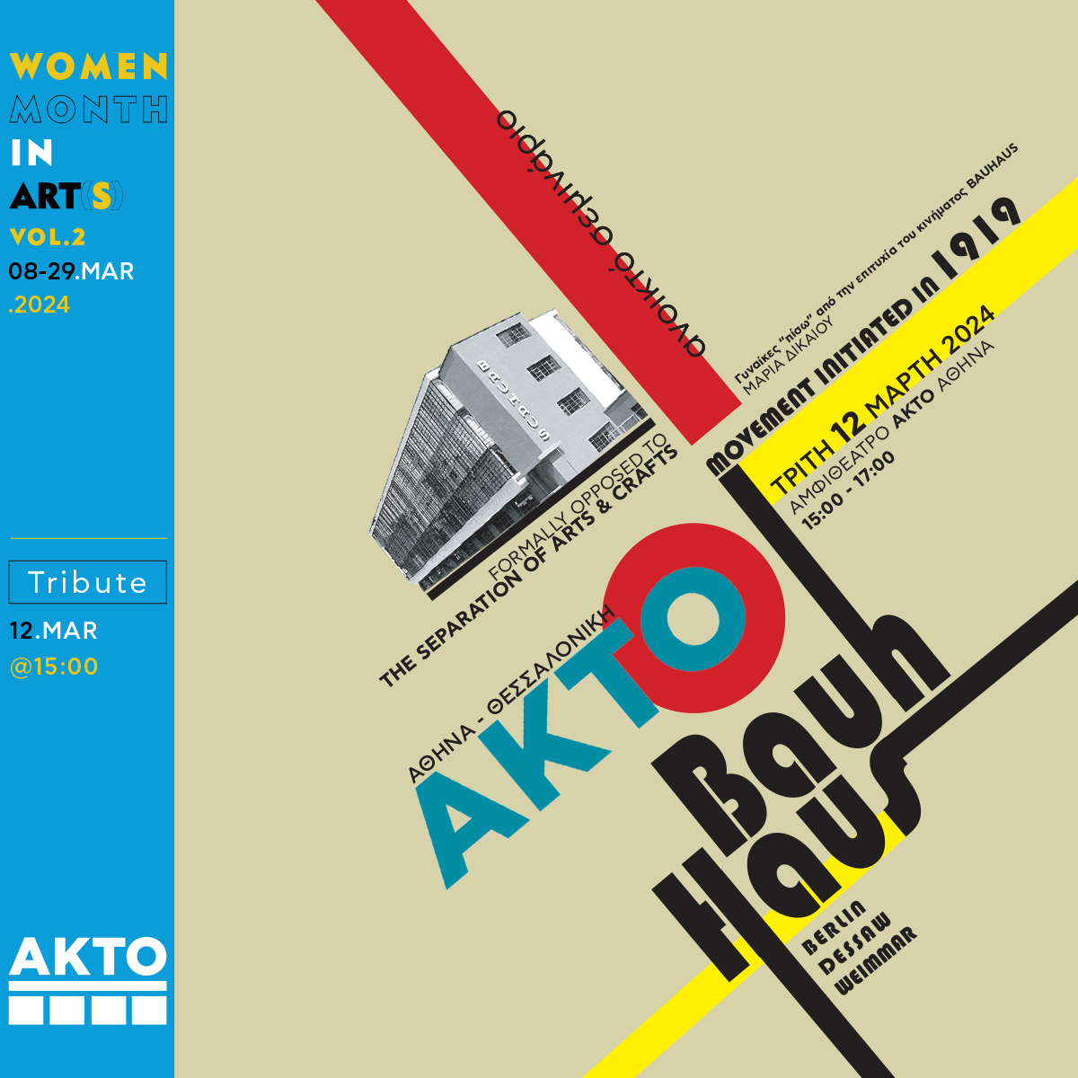 Με μεγάλη επιτυχία πραγματοποιήθηκε στον ΑΚΤΟ, η ανοιχτή συζήτηση με τίτλο 3 WOMEN 4 BAUHAUS στο πλαίσιο των εκδηλώσεων Women in Art(s) Vol II. Μία εκδήλωση – αφιέρωμα στην περίφημη Σχολή του BAUHAUS, που μετρά πλέον περισσότερο από έναν αιώνα από την ίδρυσή του.