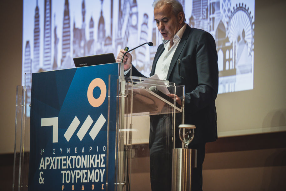 Στη συνέχεια, ο κ. Γιώργος Σκιαδόπουλος, πρόεδρος του Συλλόγου Αρχιτεκτόνων Δωδεκανήσου, μίλησε για το τετράπτυχο του τουρισμού (φορέας- πολίτης- αρχιτέκτονας- επενδυτής/ξενοδόχος) και την ανάγκη εύρεσης κοινών σημείων. Τόνισε ότι ο αρχιτέκτονας μπορεί να επέμβει στην καθημερινότητα, όσο δύσκολο κι αν είναι, και ότι τα έργα μπορούν να ωφελήσουν ταυτόχρονα τους τουρίστες και τους ντόπιους.