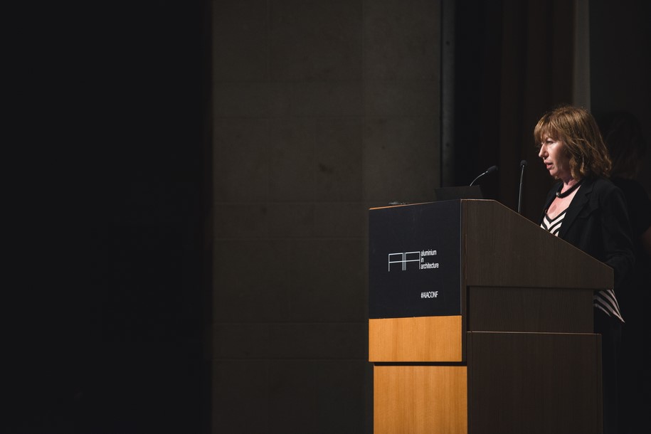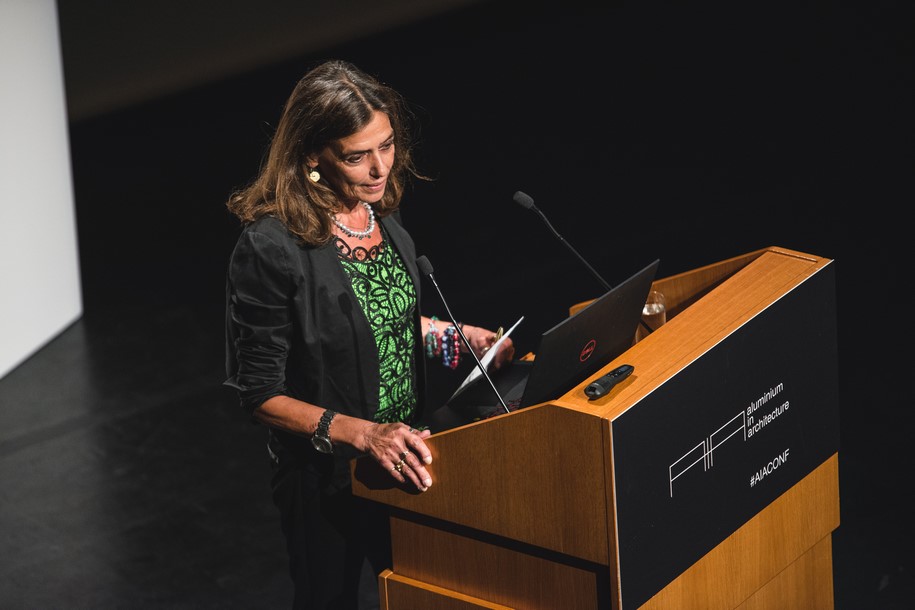 Το αλουμίνιο κατά την αρχιτεκτονική σύνθεση μπορεί να χρησιμοποιηθεί είτε ως ένα συνθετικό στοιχείο που ενοποιεί και διαμορφώνει επιφάνειες, είτε ως ένα στοιχείο που δημιουργεί, αλλά και αναιρεί όρια. Ενδεικτικά αναφέρθηκε σε διαμορφωμένες διατάξεις οι οποίες συντελούν στη συγκρότηση ορίων δημιουργώντας περίκλειστους χώρους με αίθρια, αλλά και στη σύνθεση διαδρομών όπου συντίθενται τελετουργίες πρόσβασης των χρηστών σε σχεδιασμένους χώρους. Κλείνοντας την ομιλία της αναφέρθηκε στο υλικό του αλουμινίου ως έναν σύμμαχο στην εξέλιξη του επαγγέλματος του αρχιτέκτονα.
