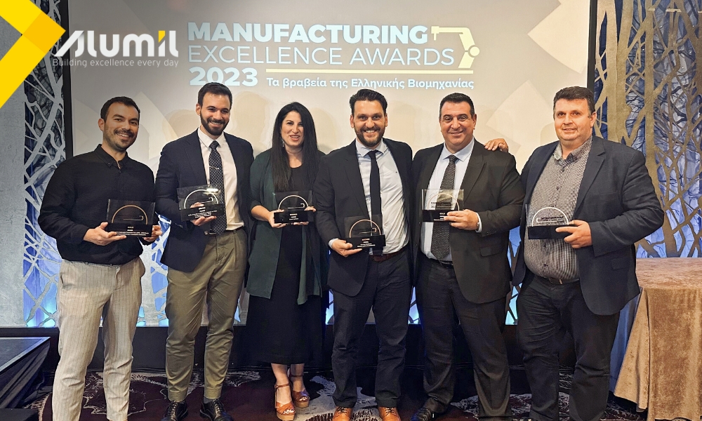 Η εταιρεία ALUMIL διακρίθηκε στην διοργάνωση Manufacturing Excellence Awards 2023, αποσπώντας 6 σημαντικά βραβεία, μεταξύ των οποίων την κορυφαία διάκριση στην κατηγορία “Δομικά Προϊόντα” και βραβεία που αφορούν την χρήση έξυπνων τεχνολογιών, την ανακύκλωση υλικού και την οργάνωση της παραγωγής.