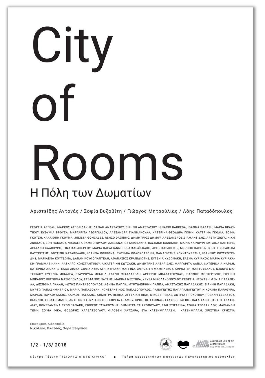 Στην έκθεση Η ΠΟΛΗ ΤΩΝ ΔΩΜΑΤΙΩΝ παρουσιάζονται τα αποτελέσματα του ερευνητικού Εργαστηρίου Αρχιτεκτονικής Σύνθεσης, με τον ίδιο τίτλο, στον Πτυχιακό Κύκλο Σπουδών, του Τμήματος Αρχιτεκτόνων της Πολυτεχνικής Σχολής του Πανεπιστημίου Θεσσαλίας. Η έκθεση διοργανώνεται από το Τμήμα Αρχιτεκτόνων Μηχανικών του Πανεπιστημίου Θεσσαλίας σε συνεργασία με την Διεύθυνση Πολιτισμού του ΔΟΕΠΑΠ-ΔΗΠΕΘΕ του Δήμου Βόλου και θα διαρκέσει μέχρι 1 Μαρτίου στον 2ο όροφο του Κέντρου Τέχνης “Τζιόρτζιο ντε Κίρικο”, στο Βόλο.