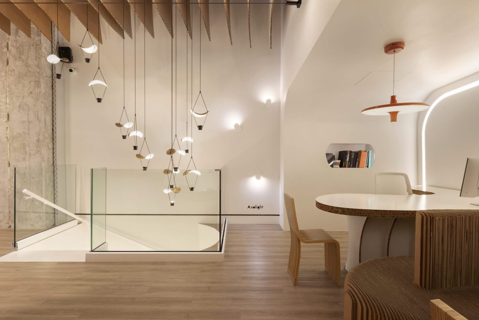 Ο σχεδιασμός του χώρου βασίστηκε σε μια πρωτότυπη αρχιτεκτονική σύλληψη: ένα lightscape από χαρτί.