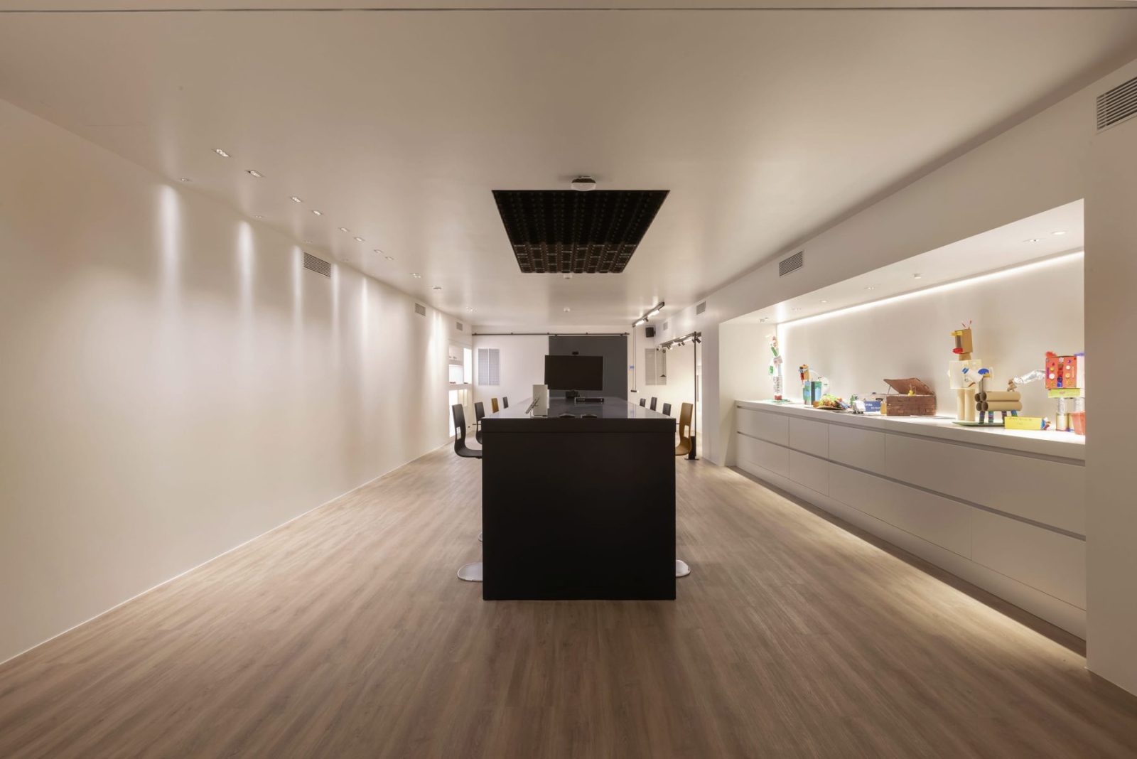 Αντίθετα, ο υπόγειος χώρος έχει διαμορφωθεί ως εργαστήριο φωτισμού. Εδώ, το αυστηρό αρχιτεκτονικό κέλυφος και η απουσία φυσικού φωτισμού ενδυναμώνουν την κατανόηση του φωτισμού ως τεχνικού εργαλείου αλλά και σχεδιαστικού αντικειμένου.