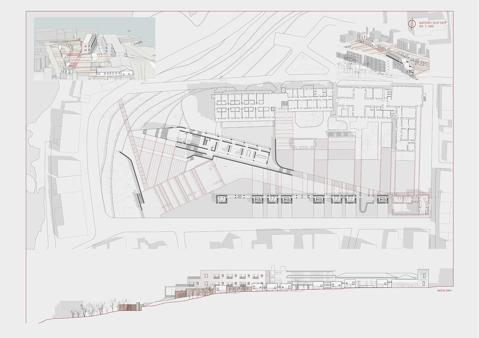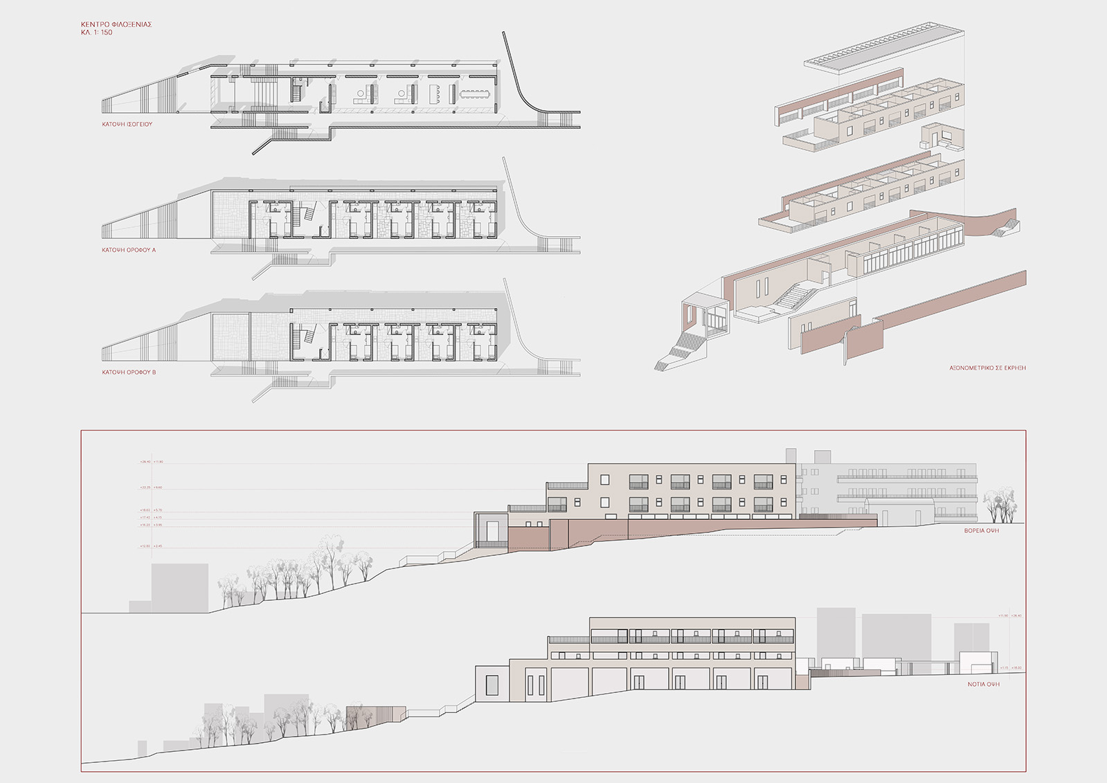 On the ground floor, there are spaces for social activities and events that aim to strengthen the community and promote interaction among women. Additionally, there are educational programs intended to empower and educate them. On the upper floors are the rooms that host either mothers with their children or single women. The entrances are located on the north side, along the secure boundary with the nursing home. The windows face the public space to promote openness, while internal balconies provide the desired level of safety. Finally, the organized marketplace, which sometimes serves as a workshop for processing and selling herbs and related products, provides the women with skills in the field of herbalism while also fostering connections with the local community. Through this initiative, the sustainable and economically independent cycle of the women involved is significantly strengthened.