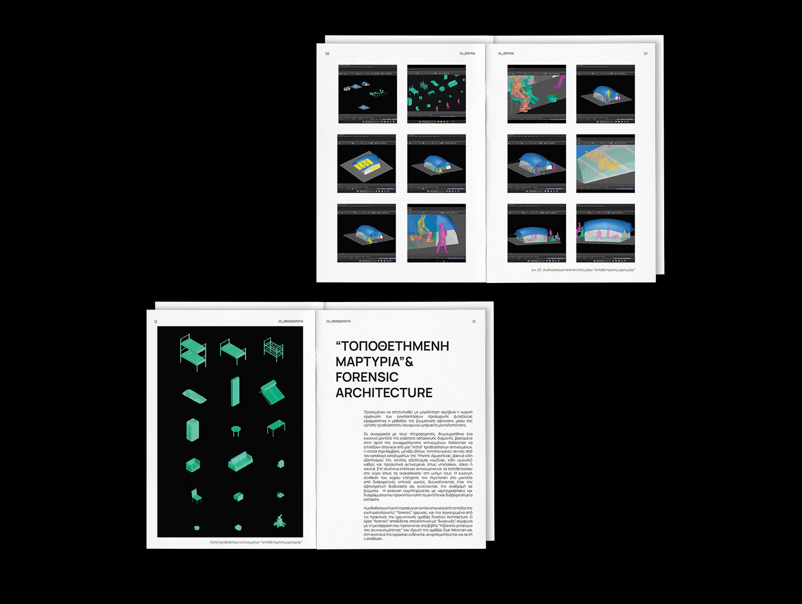 Μεθοδολογικά, η μελέτη αξιοποιεί την τεχνική της «τοποθετημένης μαρτυρίας» (situated testimony) και τα εργαλεία της ερευνητικής ομάδας Forensic Architecture, συνδυάζοντας συνεντεύξεις με τρισδιάστατη χωρική μοντελοποίηση, επιτρέποντας στους συμμετέχοντες να ανασυνθέσουν τις εμπειρίες τους σε ένα ασφαλές περιβάλλον. Σε συνεργασία με τους πληροφορητές, δημιουργήθηκε ένα εικονικό μοντέλο κάθε χώρου φιλοξενίας, βασισμένο στη συναρμολόγηση τρισδιάστατων αντικειμένων. Οι συμμετέχοντες επέλεγαν στοιχεία από μια λίστα τυποποιημένων και προσωπικών αντικειμένων και τα τοποθετούσαν στον χώρο όπως τον θυμούνταν, με το τρισδιάστατο μοντέλο να επιτρέπει την πλοήγηση, να διευκολύνει την αφήγηση και να ενισχύει την ανάκληση των βιωμένων εμπειριών.