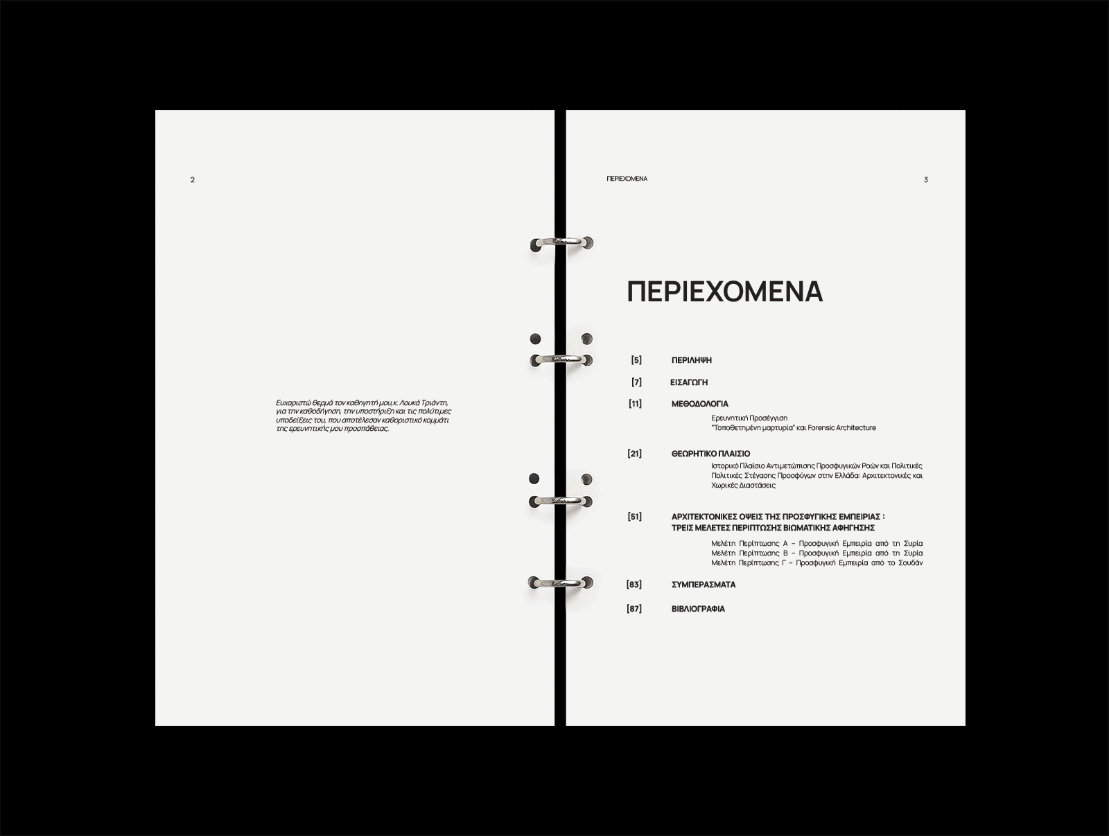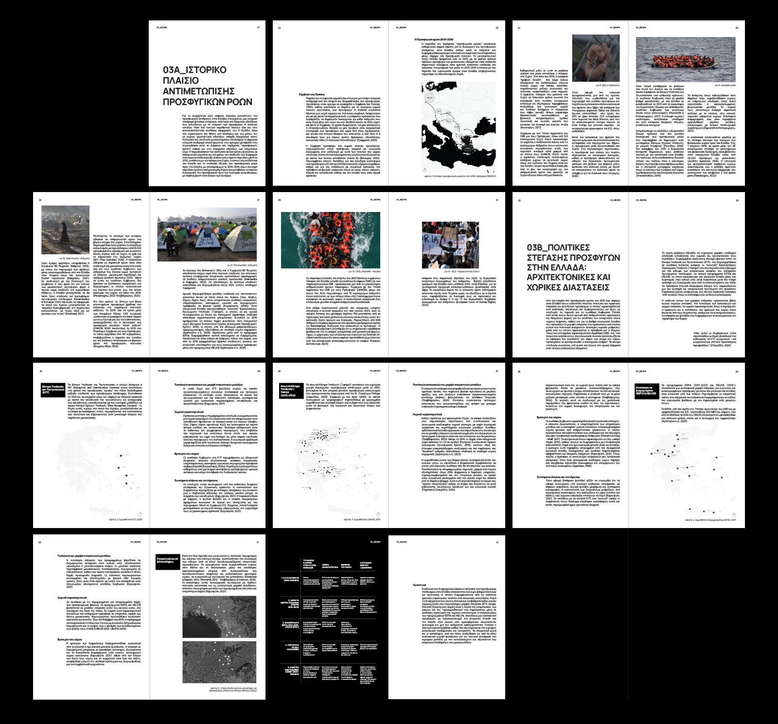 This Research Diploma Thesis by Dimitra Gkampoura, investigates the spatial dimension of the refugee phenomenon, with an emphasis on refugees’ lived experiences. Its aim is to understand these experiences through the analysis of temporary accommodation spaces, where architecture intersects with issues of power, exclusion, and resistance.The theoretical framework examines the historical context of refugee management and housing policies in Greece, while the research component is based on qualitative analysis through interviews.