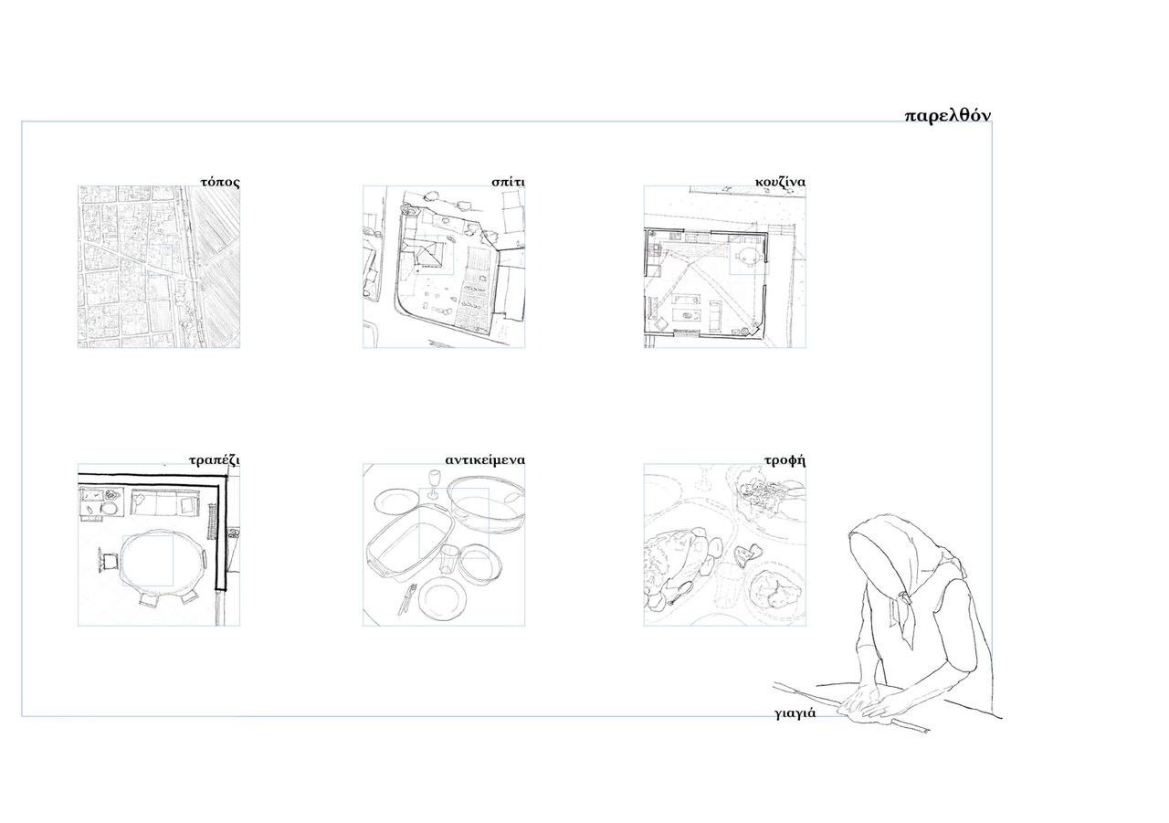 This research thesis approaches space through the lens of everyday life, positioning the kitchen as a cultural and spatial interface where architecture, memory, and food converge. Grounded in an autoethnographic methodology and supported by theoretical research, the thesis unfolds through three intergenerational narratives within the Greek context: the grandmother (village–past), the mother (provincial town–present), and the daughter (metropolis–future).