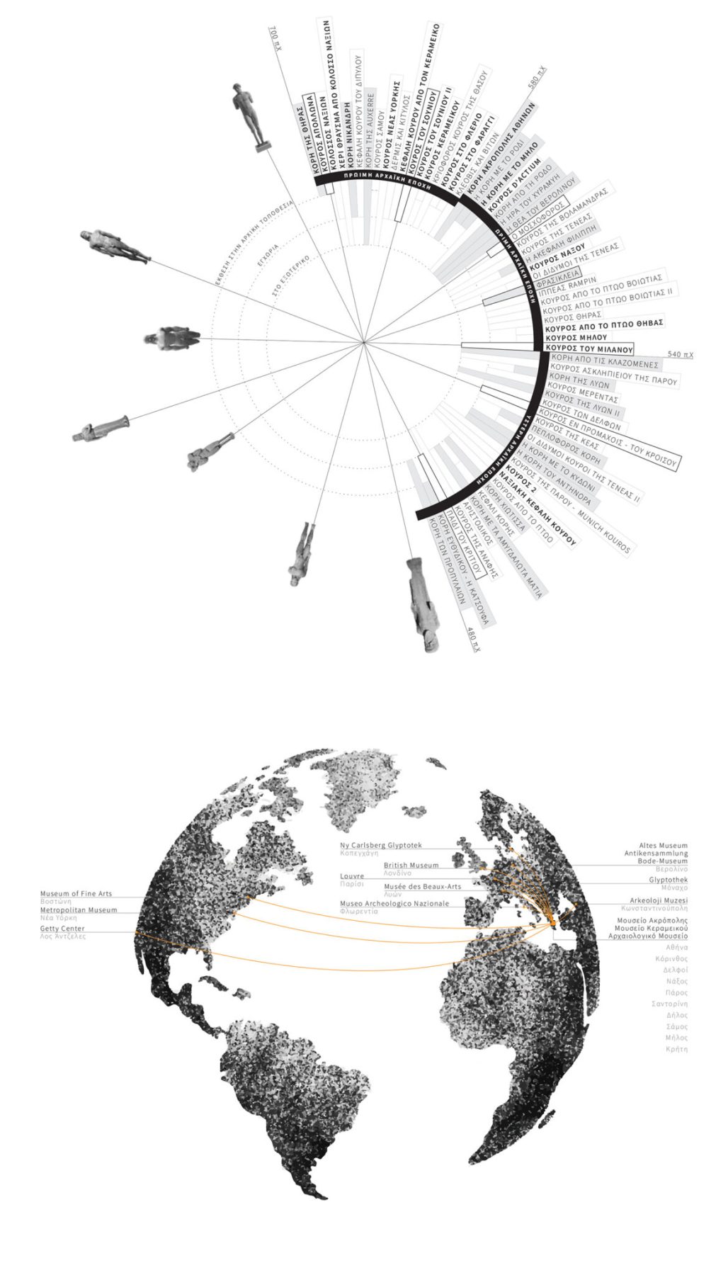 The protagonists of the intervention are Kouros and Kore, elements of Greek history that are constantly enriched by new excavations and studies.