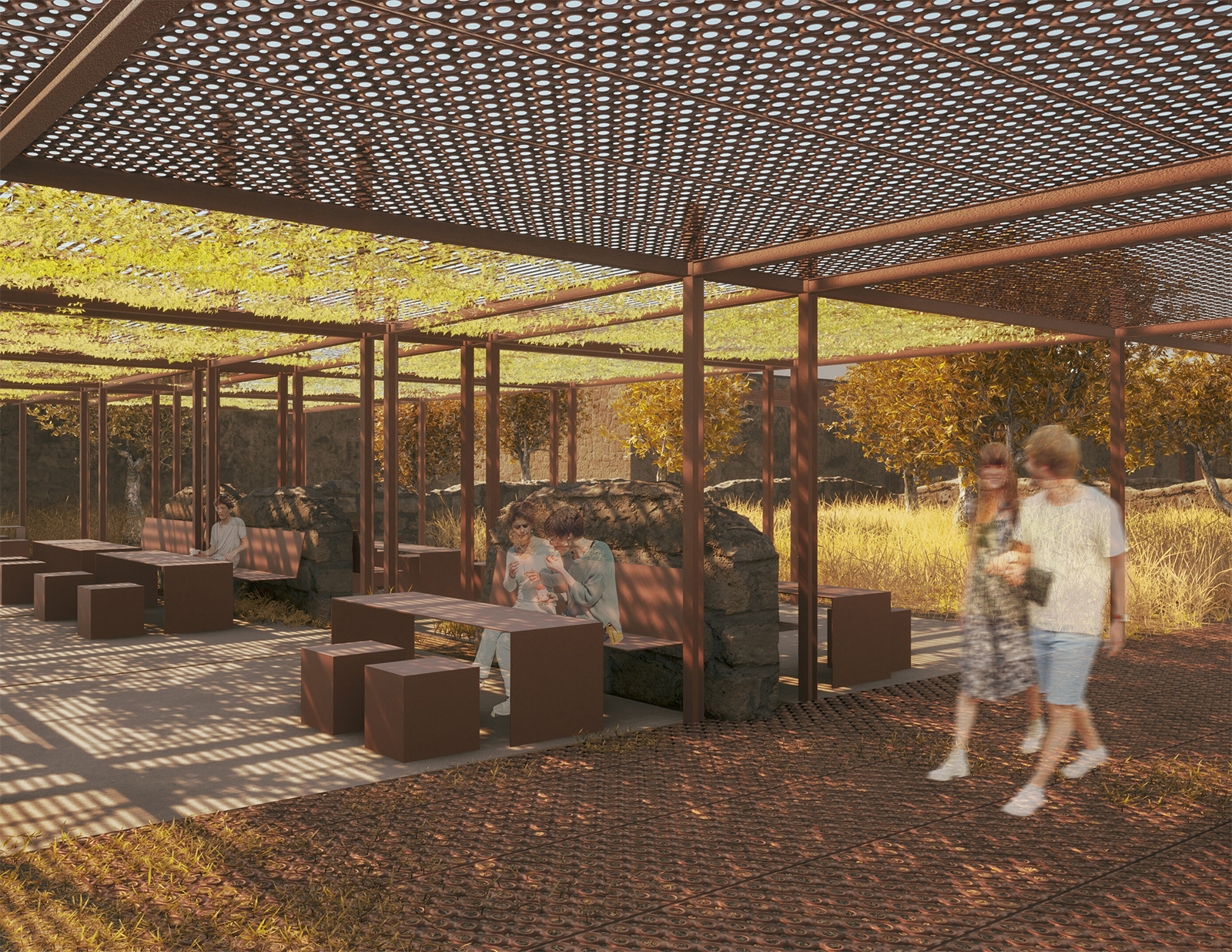 The central aim of the design of the outdoor spaces is to ensure uninterrupted urban continuity with the historic buildings that define the area’s relationship with the city. The proposal aims to reinforce the area’s character as a place of memory, preserving the memorial, fostering active citizen participation in various activities, and facilitating transitions between different parts of the city through an active network of interactions.