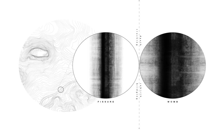 The Ilissian Field refers to the area, through which the Ilissus River once flowed, a mere 100 meters southeast of the Acropolis, in the center of Athens. Through the rites performed here, the Ilissian Field condensed together two ambiguous notions: firstly, the return to the womb, and secondly the balance on the fissure. The Ilissian Field also constituted the setting for the Platonic dialogue Phaedrus, where the mythical narratives and topological relationships of the Ilissian Field imbue every level of the dialogue. Plato describes the scene of Socrates and Phaedrus exiting the city walls, passing from the inner to the outer, deviating from the road and descending to the virtually dry river basin. They walk within the Ilissus, transforming the fissure into a way and they end up in an idyllic spot where a bridge is formed with the world of ideas. Today the greater part of the archeological space, as well as the Ilissus, is covered with derelict sports facilities, or else lacks public access.