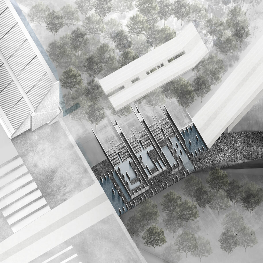 Our design is focused on the Ilissus River which, like an archaeological relic, is brought to the surface and transformed into a museum while at both ends the contact with the water is re-established, introducing a multisensory condition into the relationship between the city inhabitants and the past.