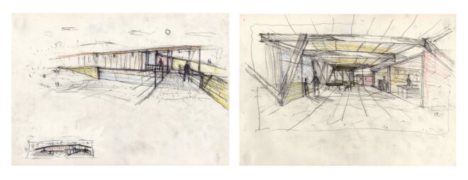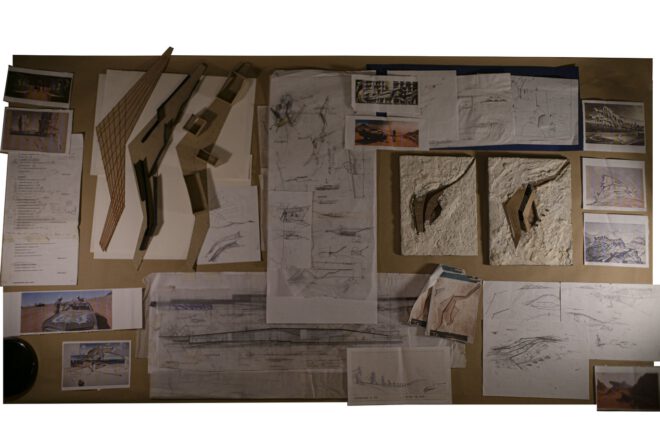 Σημαντική πρόκληση στην εκκίνηση σχεδιασμού ήταν η σχέση του Κέντρου με το φυσικό τοπίο. Η πλήρης εναρμόνιση του κελύφους στην τοπογραφία της περιοχής, καθώς και η ανάδειξη των φυσικών χαρακτηριστικών του χώρου παρέμβασης αποτέλεσε τον κύριο στόχο, αλλά και την βασική συνθετική ιδέα.