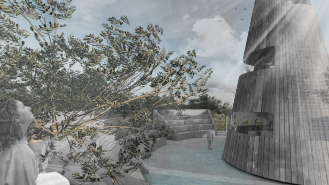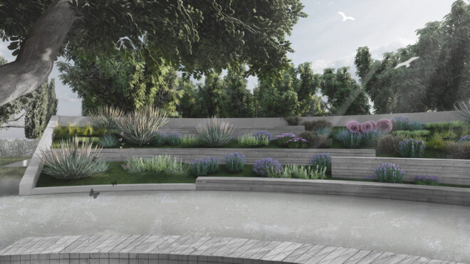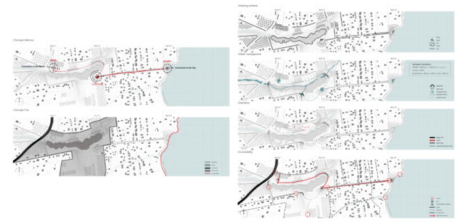 The design intention is to create a public locus, a didactic, non-static, Living Memorial that will express and imprint these memories, contribute to the tangible and intangible healing processes, integrating fire-resilient, landscape design tools, in order to achieve atonement and a better relationship with nature and its phenomena, in order to show that fire is part of nature, destruction and loss is part of nature, we are part of nature, but the important is to bounce back every time, recover and heal, continue the cyclical journey of life, forgiving and learning from, but not forgetting, the past.