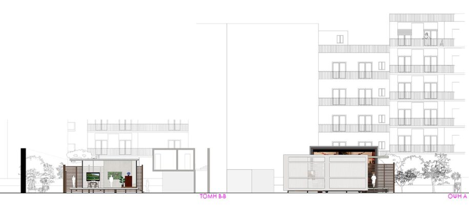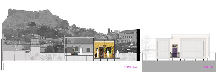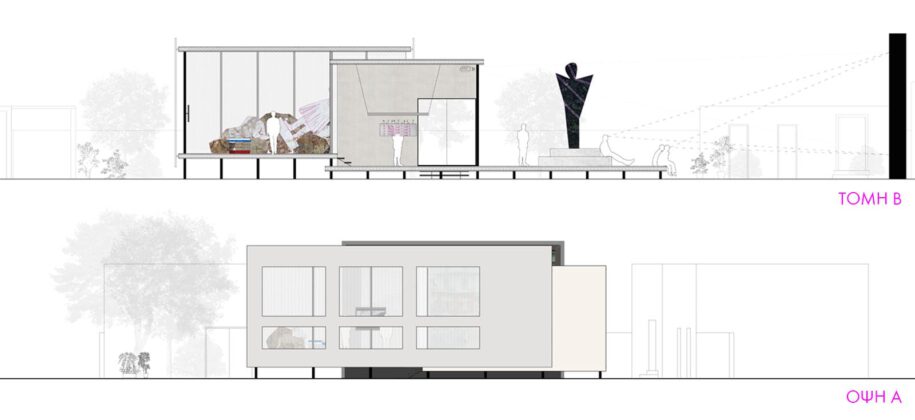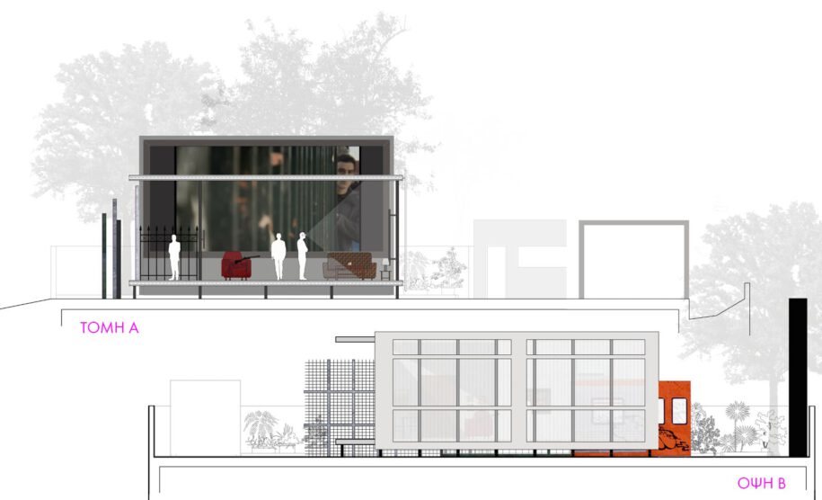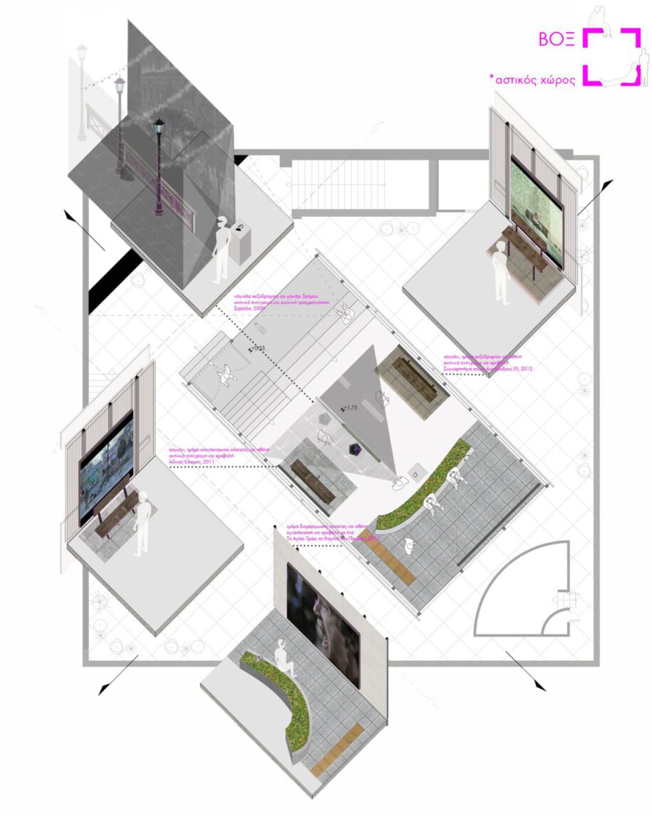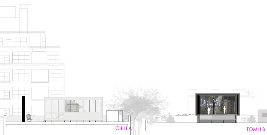 Hybrid pavilions combining the features of the open-air cinema and the polykatoikίa apartment buildings resemble modern shadow theaters. The purpose of these pavilions is to host a presentation of the relationship between the residence and the contemporary Greek cinema.