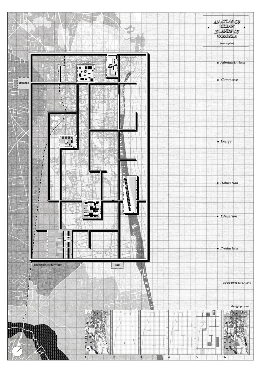 Η διπλωματική εργασία της Γεωργίας Μαρίας Δράκου, με τίτλο “Islands of Urbanities: the case of Varosha”, αποτελεί μια αστική μελέτη που αντιμετωπίζει την πόλη ως αρχιπέλαγο και έχει ως στόχο την ριζική αποκέντρωσή της υπό τη μορφή οικισμών-νησίδων που βυθίζονται στο αστικό τοπίο το οποίο εξυπηρετείται από τα δίκτια-πλατφόρμες που τα περιβάλλει.