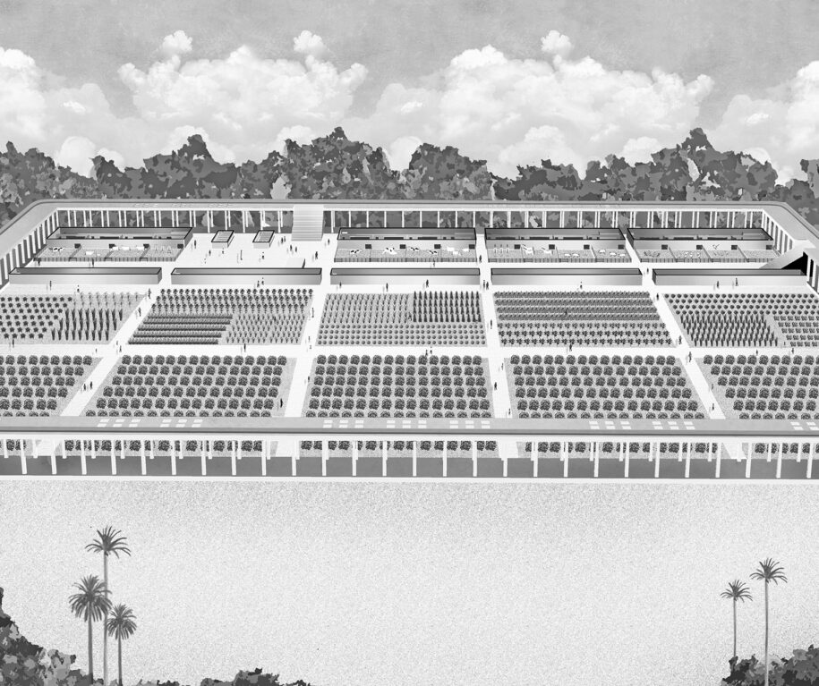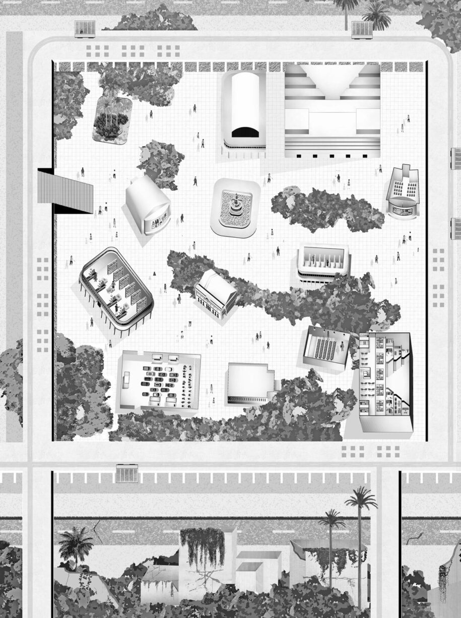 Η προσέγγιση αυτή καταλήγει σε ένα μνημειακό συγκρότημα που αναπτύσσεται ως εδαφικό αρχιπέλαγος και στο οποίο ριζικά διαφορετικά αντικείμενα συγχωνεύονται σκηνοθετώντας ένα νέο υβριδικό τοπίο, με την αρχιτεκτονική να μην είναι μόνο ένα αντικείμενο, αλλά η διαδικασία με την οποία επιβιώνει τελικά όλη η ιδέα της πόλης.
