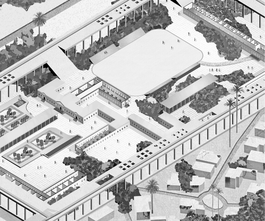 The proposal aims to create a new urban condition which consists mainly of the synthesis of two factors, the open and the enclosed. The city is now an urban system that operates under four basic processes. Grid, being the first element that indicates the new urban reality. The second process is urbanization, in which, things and events have a form, a limit and an existence and everything is pushed toward an endless repetition.