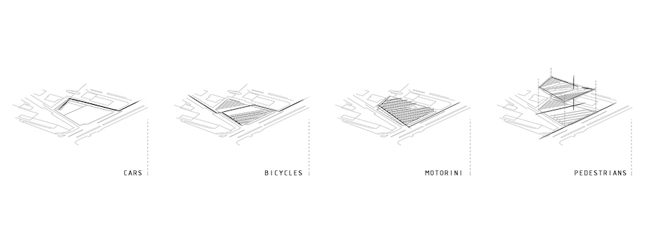 The main challenge of the competition revolves around resolving the network’s main building, the Motorino Check Point of Termini Central Station, which will accommodate scooters, bicycles, and corresponding services.