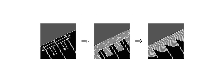 A large slope dominating the site is proposed, an almost literal extension of the adjacent Termini Station’s canopy. Spaces are created by peeling off segments of slabs to form covered areas, indicate entrances/exits, and form a multilevel connective thread and continuation of the urban fabric. This way the parking space is not only connected to the flows of the city, but is also reinstated as a new type of landmark for the surrounding area.