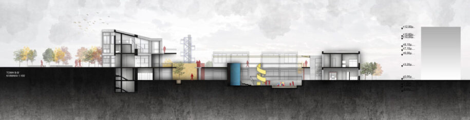 Με αυτήν την κίνηση θέλαμε να εισάγουμε ομαλά την πόλη μέσα στο συγκρότητα, δίνοντας ένα χαρακτήρα περισσότερο κοινωνικό και ανοιχτό σε σχέση με άλλα ιδρύματα τέτοιου κτιριολογικού προγράμματος.