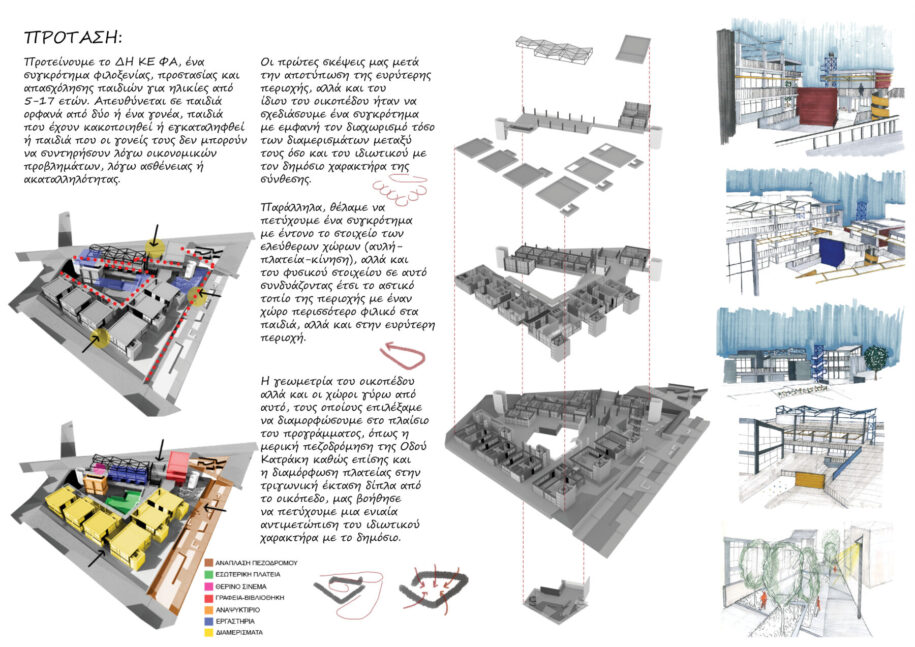 Η διπλωματική εργασία της Θεοδώρας Λιάλια και της Γεωργίας Βασιλείου καταπιάνεται με τον σχεδιασμό ενός Κέντρου Φιλοξενίας ανηλίκων στην πόλη της Κοζάνης.