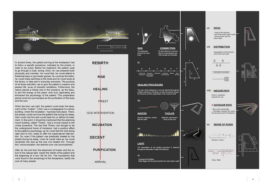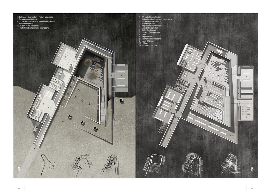 Our goal for the New Museum is to serve beyond the evident function of an exhibitional space for the significant findings left at the storage areas of the existing archaeological site: We mainly design a Museum that will actively guide the visitor to a full perception of the Asklepion as a healing place above all and the sensation that goes with it. The archaeological site has a very vivid past that deserves to be exposed at the New Museum, offering the visitor a chance to find out what the Asklepion was, how it functioned in ancient times and how the elements of nature were combined with the healing of patients and the evolution of medicine.