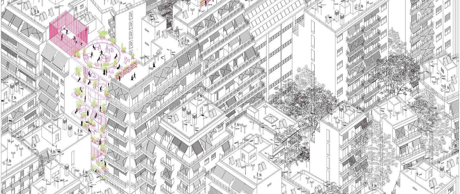 This research project looks into the origins of Greek urban landscapes, a unique homogeneous form of urbanism shaped by the perpetual repetition of the fundamental apartment building type of ‘Polykatoikia’.