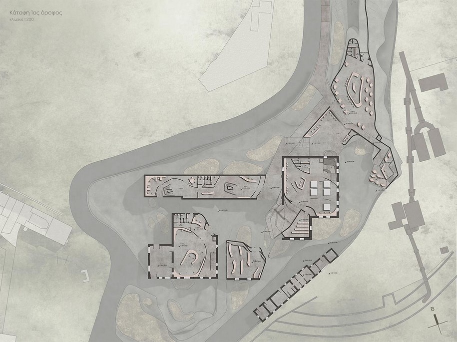 Η προτεινόμενη χρήση είναι Κέντρο Υλικών, με ερευνητική δραστηριότητα, βιομηχανική παραγωγή πιλοτικής κλίμακας, υλικοθήκη και εκθεσιακό χώρο με υποστηρικτικές χρήσεις. Χρησιμοποιήθηκε το ψηφιακό εργαλείο της προσομοίωσης ρευστού για να επιτευχθεί η ροϊκή μορφή που συνομιλεί με το ανάγλυφο και τα υπάρχοντα κτίρια.