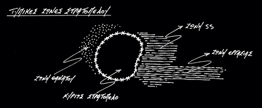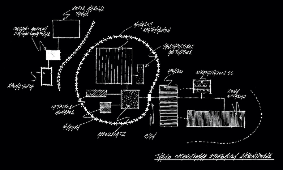 Having vast information about the terror that had risen into the Nazi concentration camps by now, we are about to examine the details; beyond and behind them. It is essential to highlight the forces that flourished into the backstage and were able to put on stage the cruelest act of human civilization. Sciences that had always reflected the progress of human intelligence, were transformed into our most loyal allies, on the road to perdition. In sympathy with this, Architecture altered from a hymn writer of life, to a catalyst of death. Tracing architectural ambitions of the Nazi regime, leads to the study of space configuration in concentration camps. Fields of insanity are being analyzed and understood through logical justifications, as creations of a human being. It is an oxymoron, unpleasant, but inevitably true fact. The legacy of the Nazi regime to Architecture was absolute terror. The one of realization through deification of death.