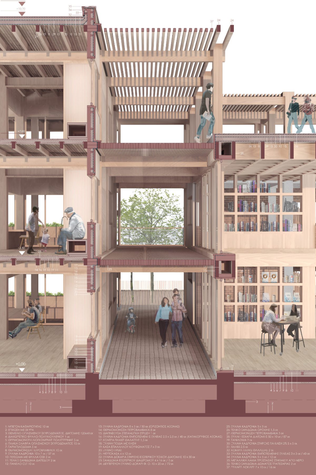The aim of this thesis project was the pilot implementation of a co-housing model in Greece, not only in terms of its particular operating program, but also in terms of construction materials, the possibility of architectural flexibility of interior spaces, and its proximity to a unique natural element – the Pikrodafni stream.