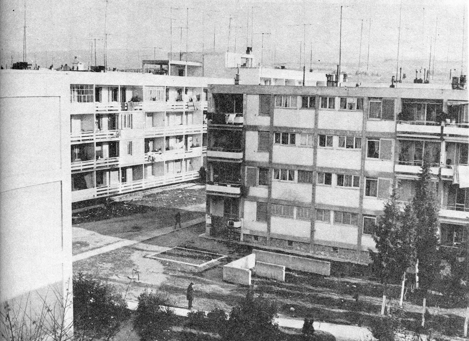 The urban fabric is almost entirely composed of buildings from the 1950s and 1960s, as well as buildings from the 1970s and 1980s, developed under the “antiparochi system”. While these structures met the housing needs of their time, they are often considered inadequate and, in many cases, neglected and in need of restoration.