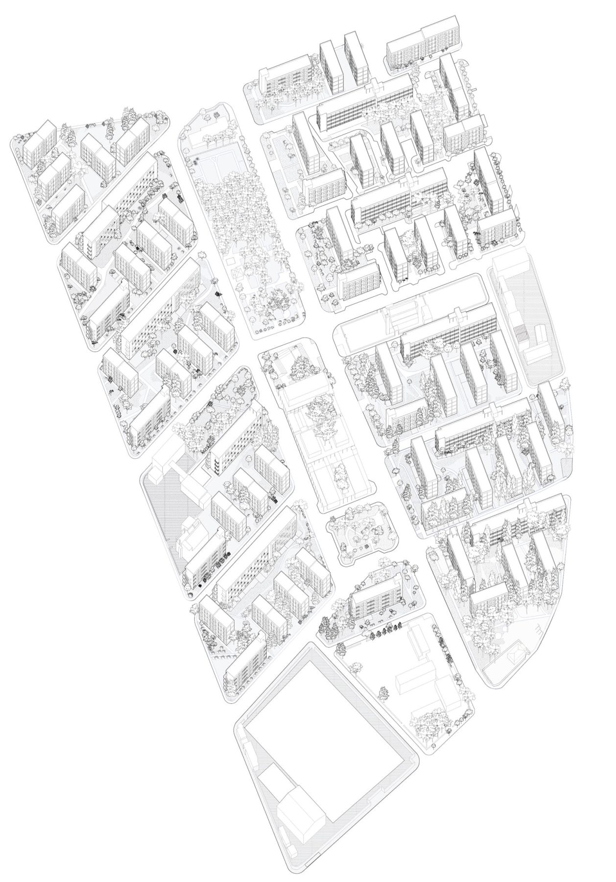 A pilot project is proposed for block no.8, selected for its typological diversity, small scale and strong presence of greenery. The phasing of the project is: architectural design, community mobilization, adaptation of building regulations through legislative reform, land allocation, securing funding and, finally, construction using prefabricated CLT components.